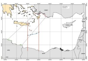 Αν με την Ιταλία έγινε δεκτή η μείωση της επήρειας των μικρότερων νησιών του Ιονίου, με την Αίγυπτο έγινε δεκτή η μειωμένη επήρεια της μεγαλονήσου Κρήτης, αντί για 50-50-%, 45-55% έναντι του ηπειρωτικού αιγυπτιακού εδάφους. Επίσης, η οριοθέτηση προχωρά μέχρι τα μισά της Ρόδου και δεν περιλαμβάνει το ανατολικό τμήμα της Ρόδου και το Καστελόριζο.