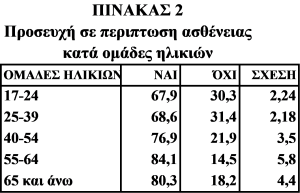 Στον Πίνακα 2 δίνονται τα αποτελέσματα της έρευνας κατά ομάδες ηλικιών.