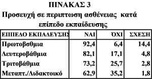 Στον Πίνακα 3 δίνονται τα αποτελέσματα της έρευνας κατά επίπεδο εκπαίδευσης.