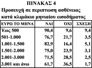 Στον Πίνακα 4 δίνονται τα αποτελέσματα της έρευνας κατά κλιμάκιο μηνιαίου εισοδήματος.